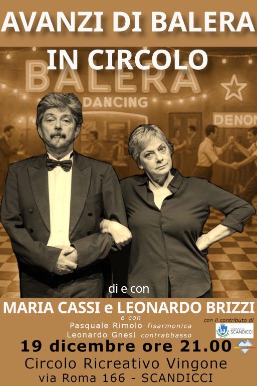 “Avanzi di balera in circolo” porta nei circoli culturali fiorentini l’atmosfera delle balere popolari, unendo musica dal vivo, teatro comico-musicale e danza collettiva.